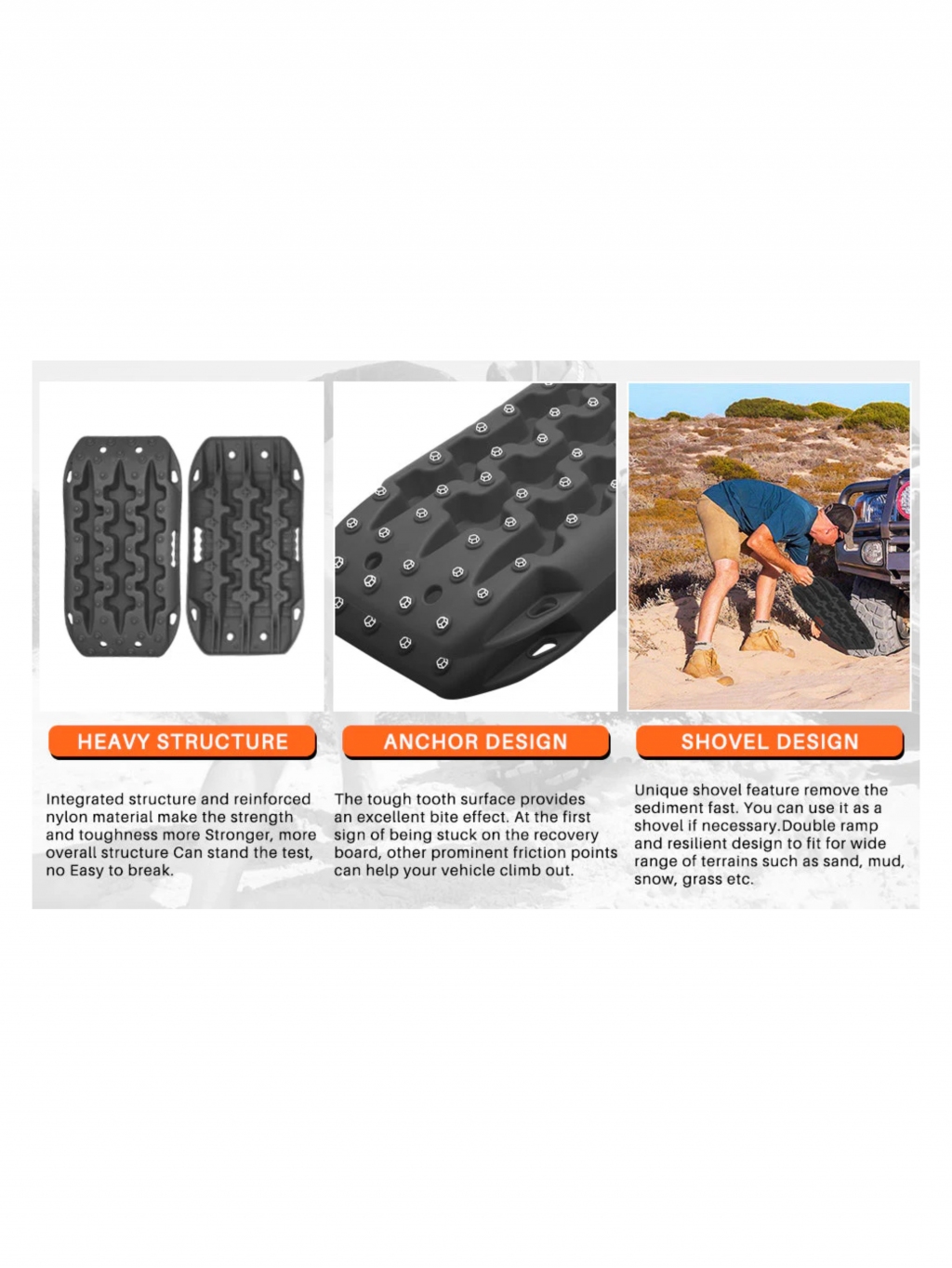 ?سطح دندانههای مسیر بازیابی ما اثر چسبندگی عالی ایجاد میکند و نقاط اصطکاک برجسته آن میتواند به وسیله نقلیه شما کمک کند تا از هر موقعیتی خارج شود و آنها را به اقلام عالی کیت بازیابی آفرود تبدیل میکند. سریعتر و ایمنتر از گیر افتادن خلاص شوید