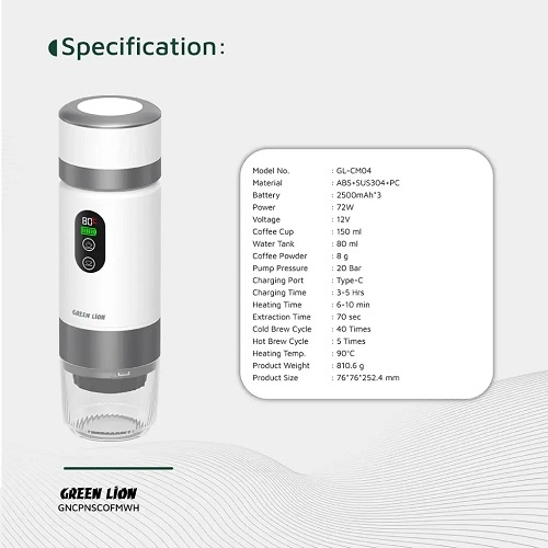 مخزن آب ۸۰ میلیلیتری، مناسب برای تهیه فنجانی ~150 میلیلیتری قهوه
